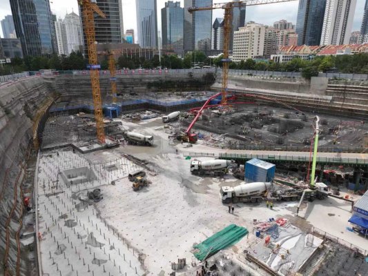 鲁商中心1C区(浮山湾总部基地)项目塔楼根底大体积混凝土浇筑竣工